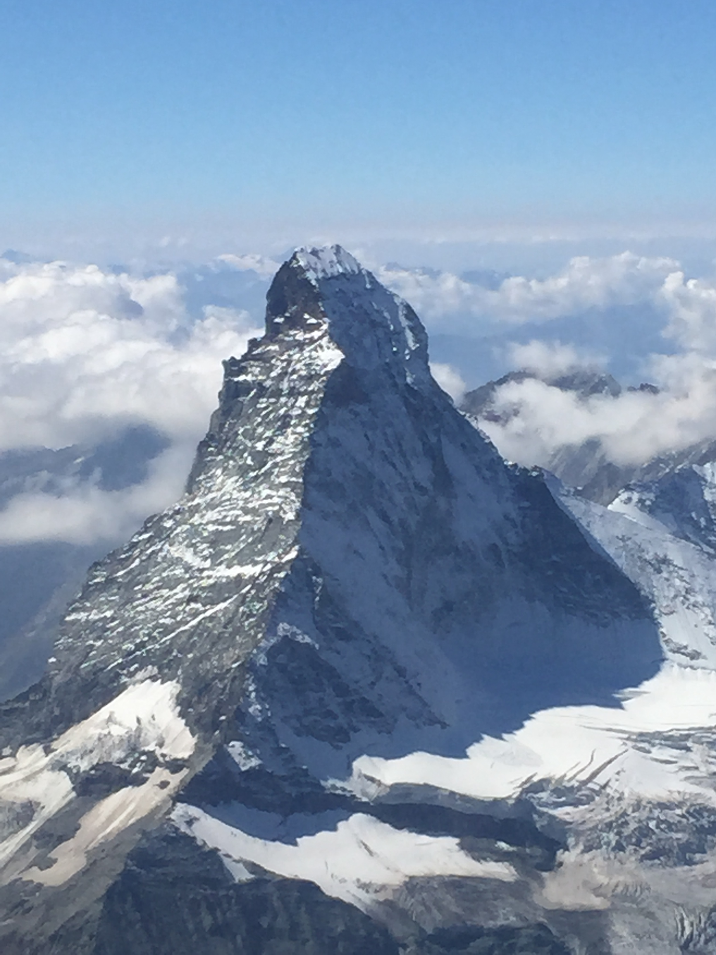We flew up close to the Matterhorn, the mountain used as the logo for the famous Toblerone chocolate, and circled back to see it from the other side. I was shocked to see 5 climbers at the top of the mountain.