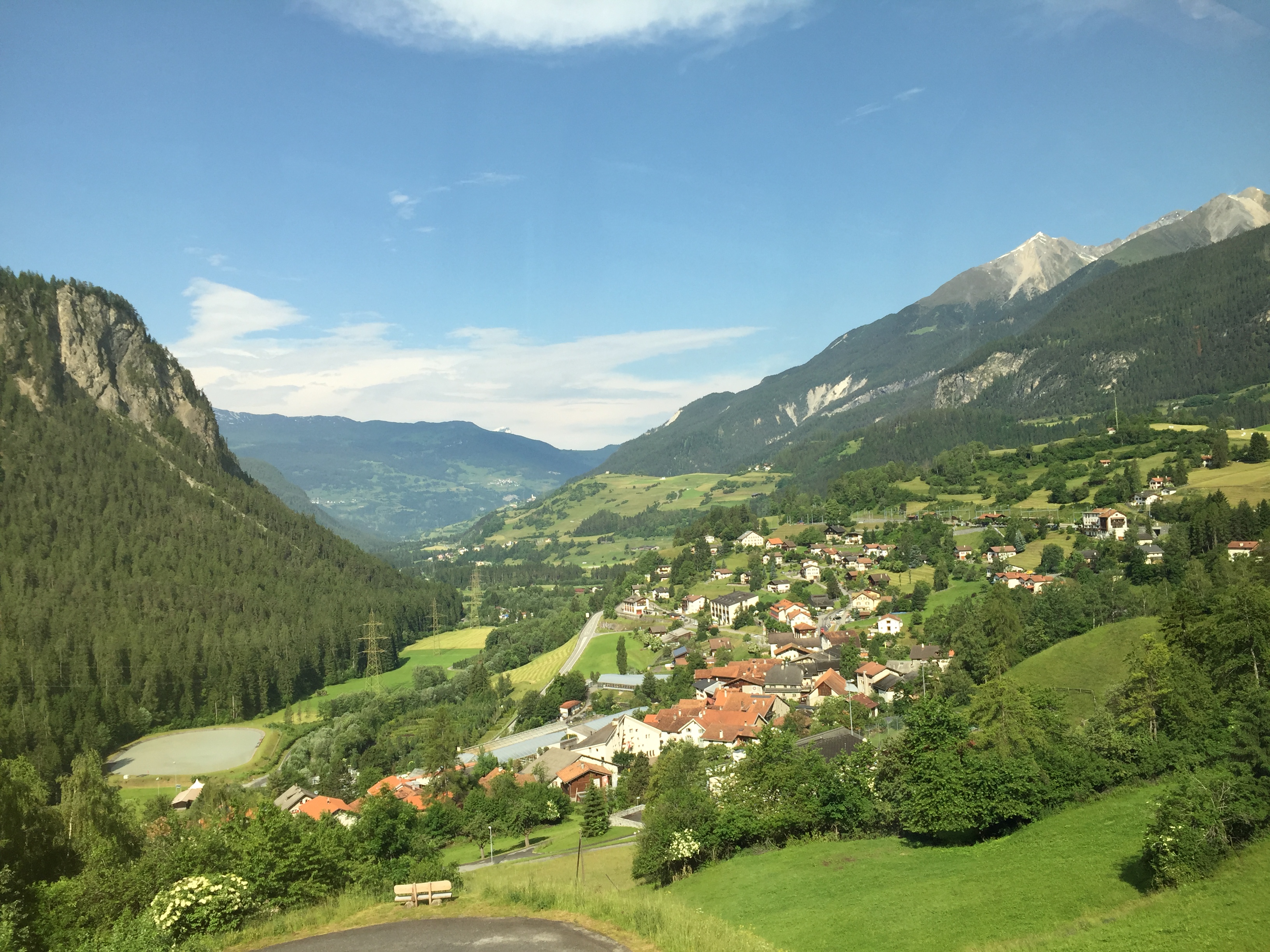 The train then started its descent where we encountered one of the more beautiful lakes inching us closer to the Italian border, Lake Poschiavo.