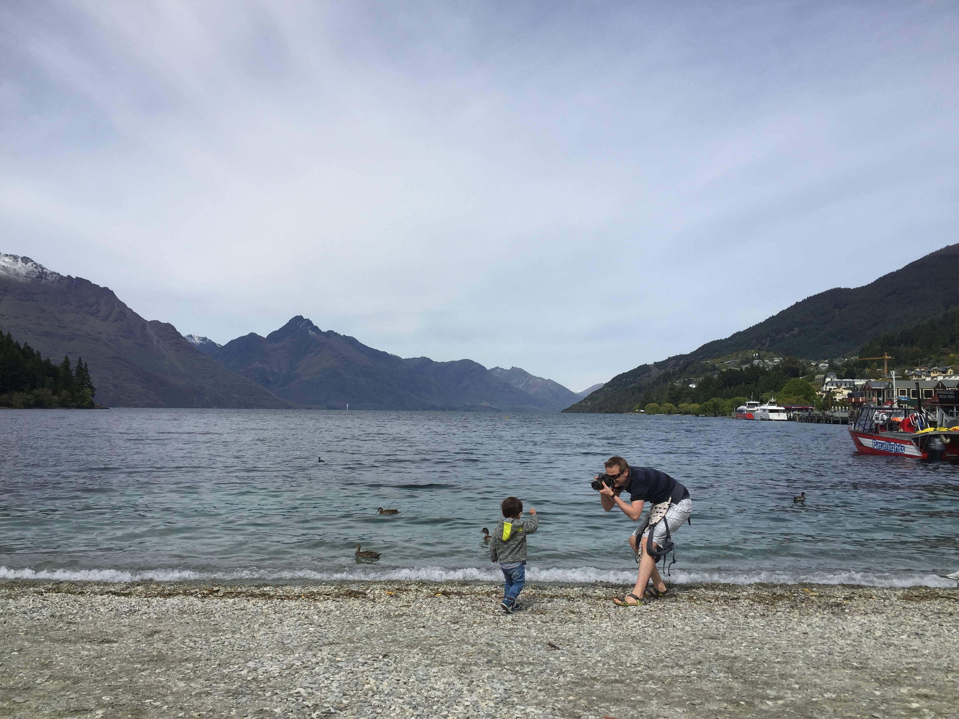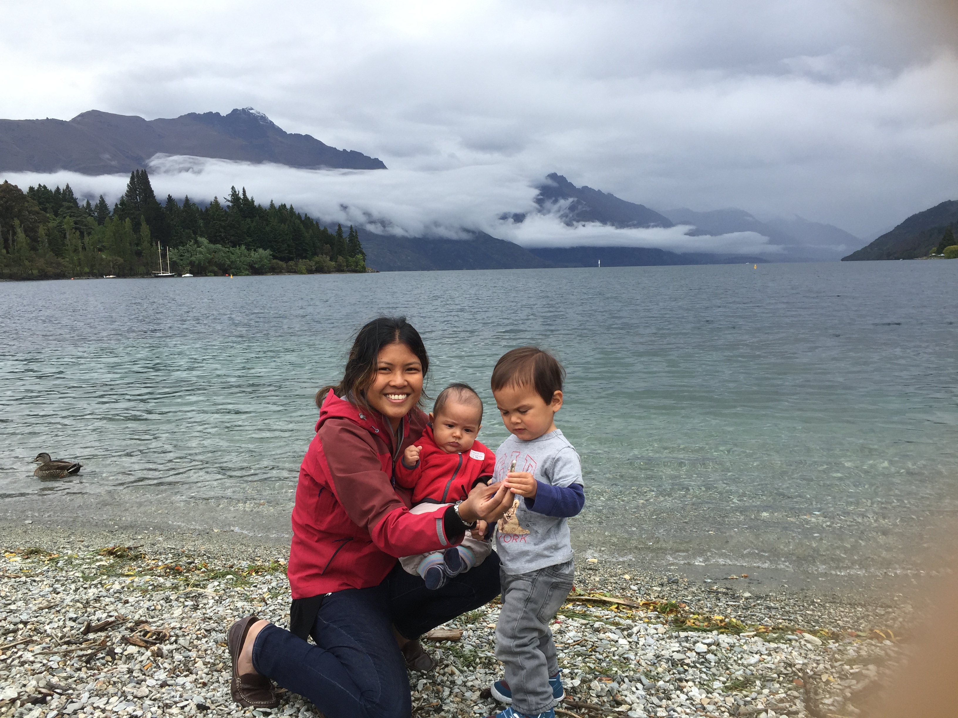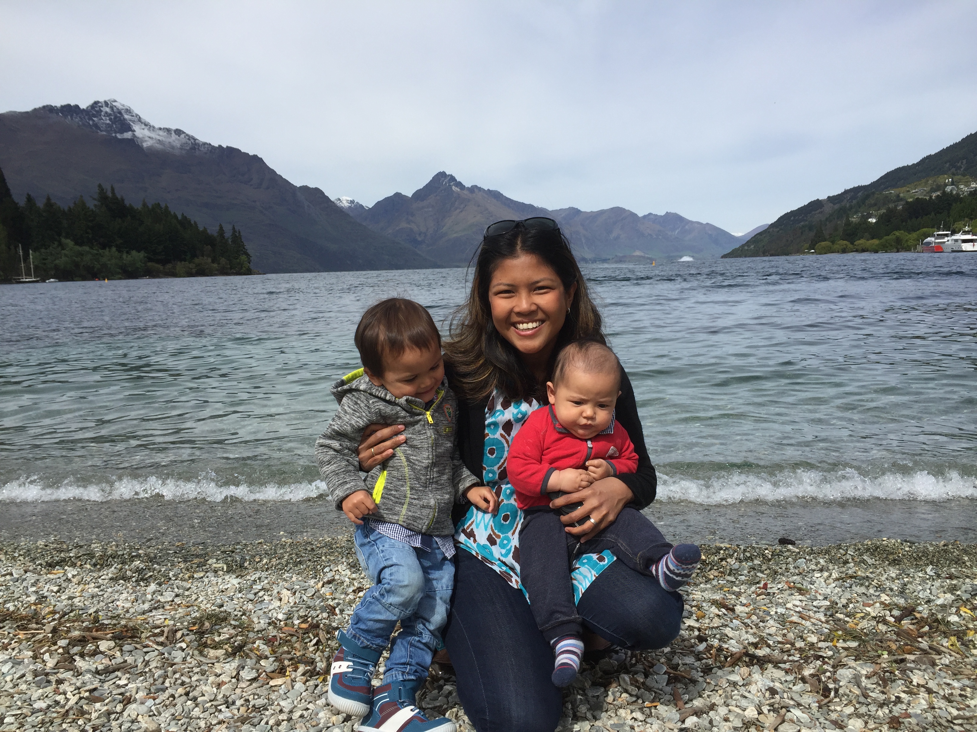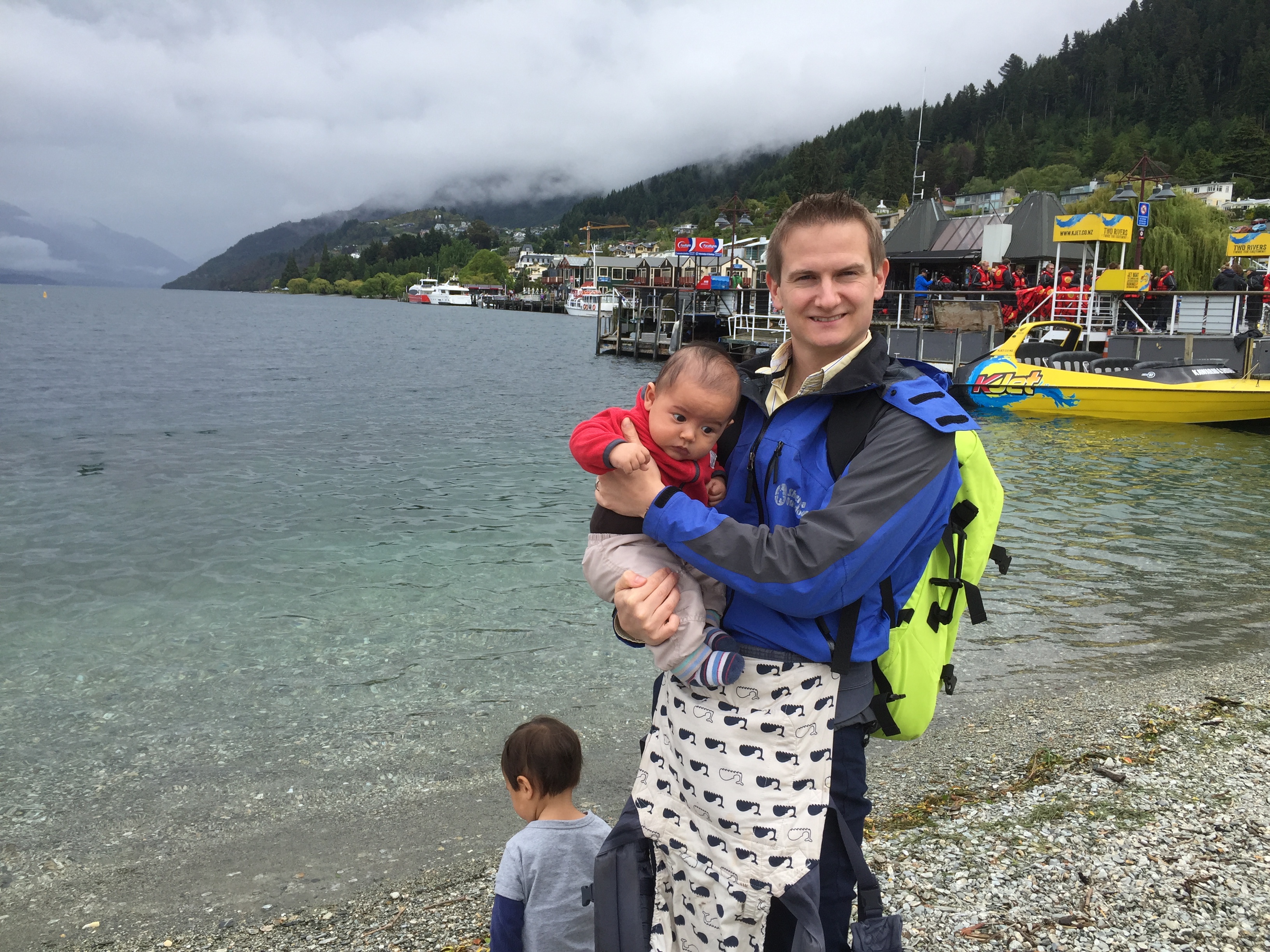 It didn’t end there. Ilyas was hungry and wanted a banana. He finished it and asked for another. I reached down to grab one from the bag at my feet and when I turned to give him the second banana, I saw that he had thrown up all over his beautiful new jumper. All this happened before 11am (after not much sleep following the long trip to get to Queenstown the day before).
