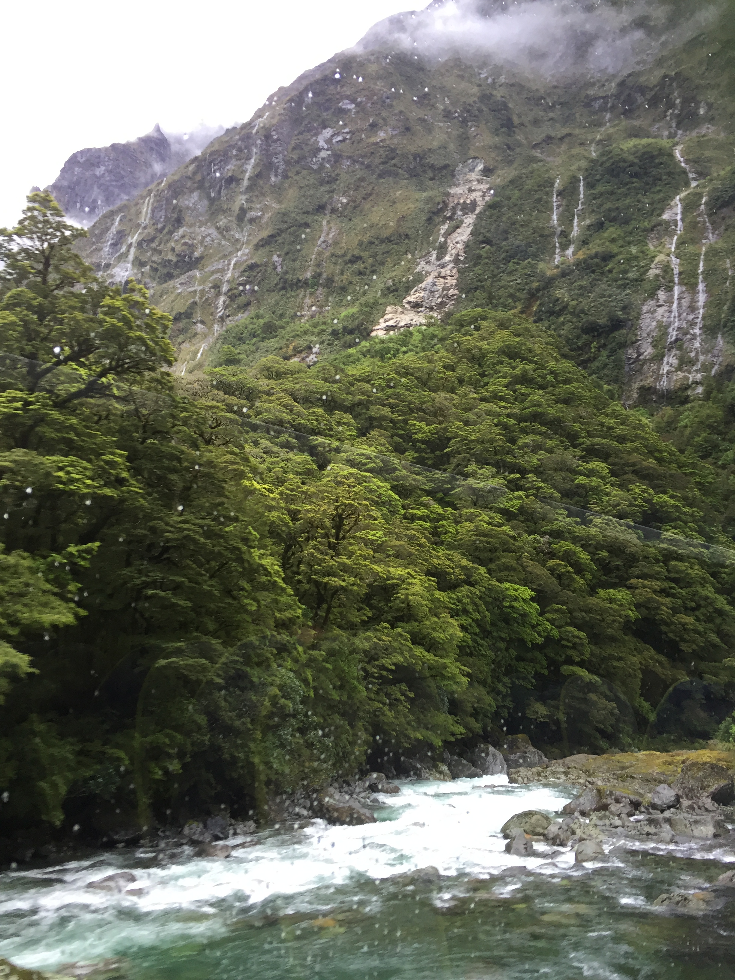 The journey was unforgettable for many reasons. We waited for the bus at the wrong Copthorne Hotel and had to run in the rain while carrying two babies at 6.30am to get to the right Copthorne Hotel. Our bus then broke down within ten minutes of departure and we were transferred onto another bus. Upon arrival in Te Anau (and realising Noah had a poop explosion all the way up his back), we were informed we will not be able to go to Milford Sound and will go to Doubtful Sound instead. Luckily we ended up going to Milford Sound after all and it was with Real Journeys which had the nicest bus (check out the roof/windows).