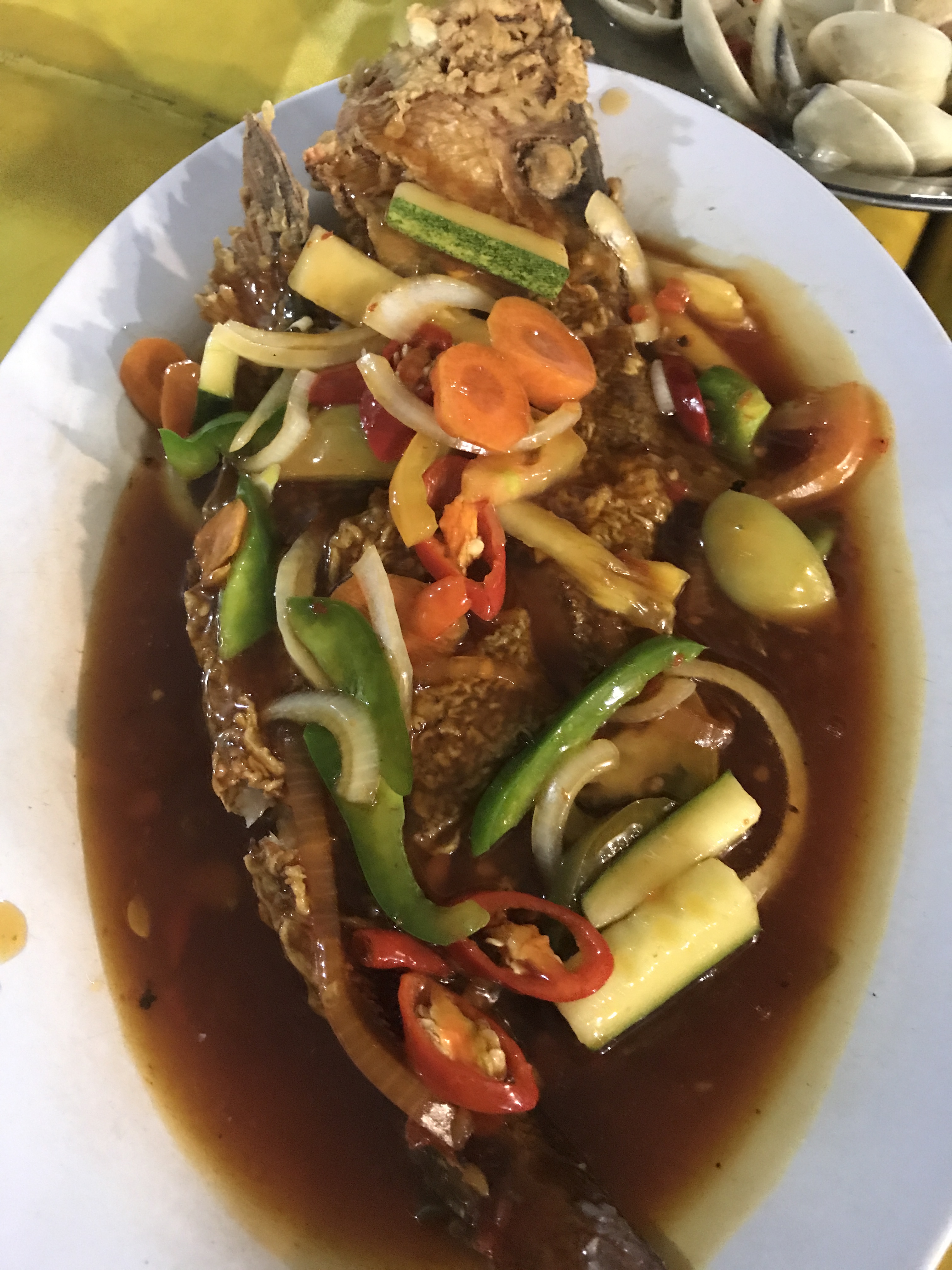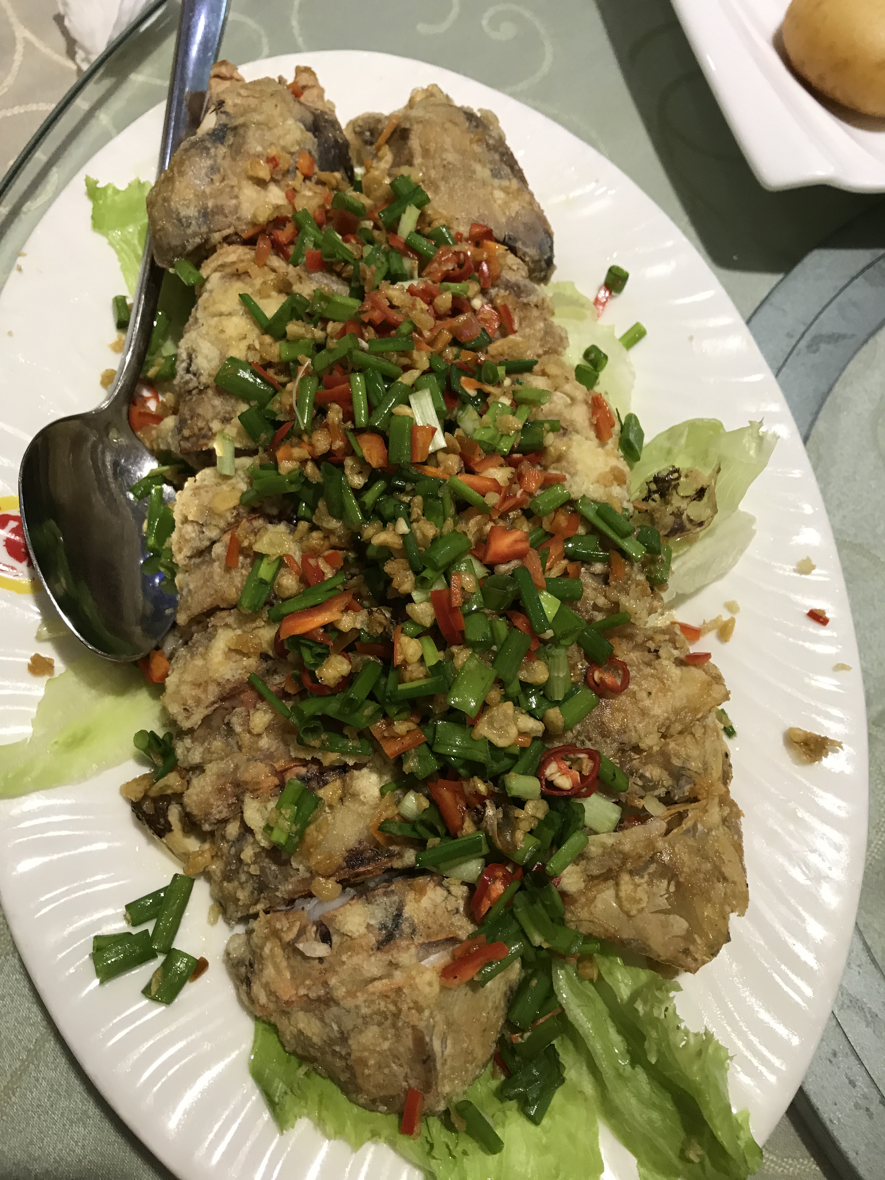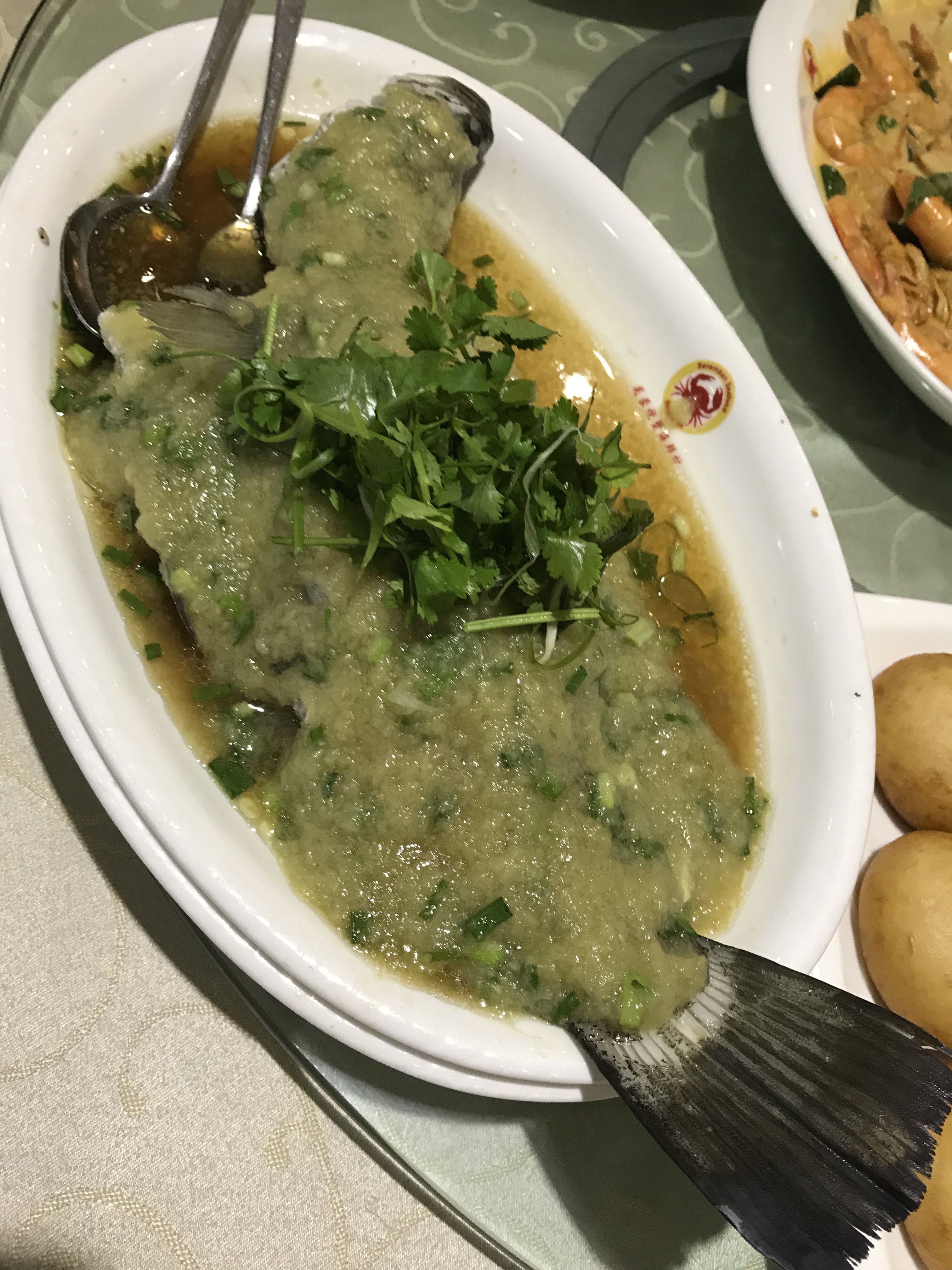 This restaurant is famous for its chili crabs and that was just what we ordered when we got there for dinner one night. We also had clams, mantis prawns, some other big prawns, squid and steamed fish.