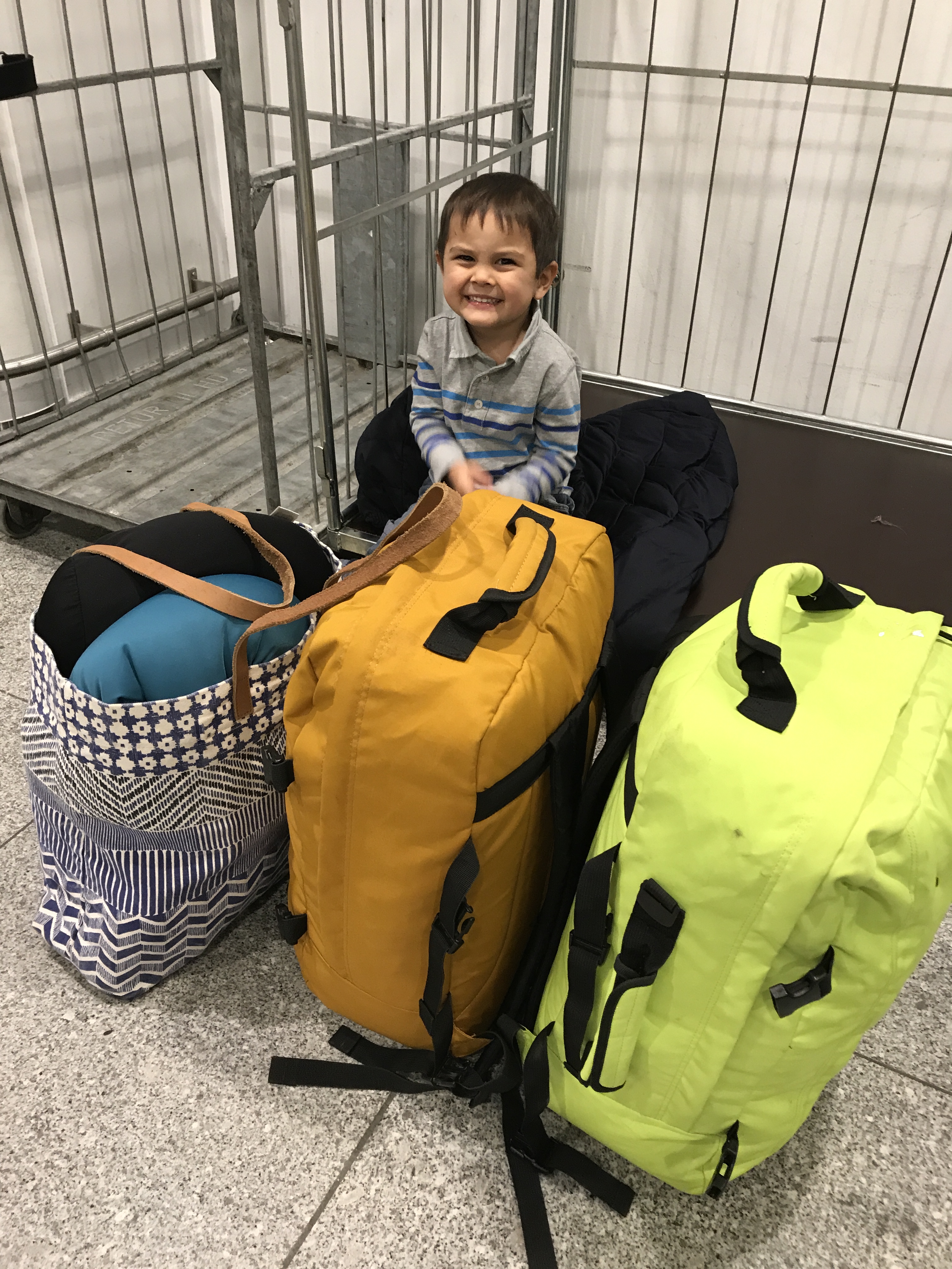 Pack light! This is how much luggage we had with us on the recent 9 days 8 nights cruise. I managed to fit 90 diapers, 12 tops, 3 jeans, 2 lighter jackets (on top of their winter ones) and pajamas per kid, clothes for us adults, toiletries, some snacks, 3 pillows, toy cars, 5 books and more into 3 hand luggage bags – 2 being Cabin Zero bags.